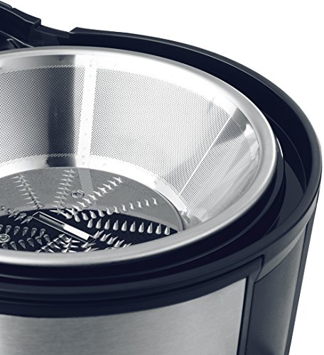 Il dispose d’un compartiment de remplissage universel pour différents types de fruits et légumes, ainsi que d’un séparateur de pulpe et d’une cruche à jus d’une capacité de 1,25 litre. Il a des dimensions de 31,2 x 18 x 31 cm et un poids de 4,4 kilos, il a donc besoin d’un bon espace dans la cuisine.