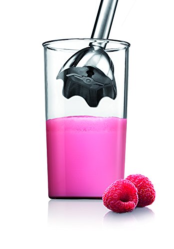 Ce modèle comprend une tasse à mesurer d’une contenance de 600 ml, calibrée en ml et en oz, qui, grâce à sa puissance, permet d’obtenir des résultats fabuleux en quelques secondes. Son montage et son démontage, ainsi que son nettoyage, sont très simples et rapides. Vos accessoires, y compris votre pied, vont au lave-vaisselle.